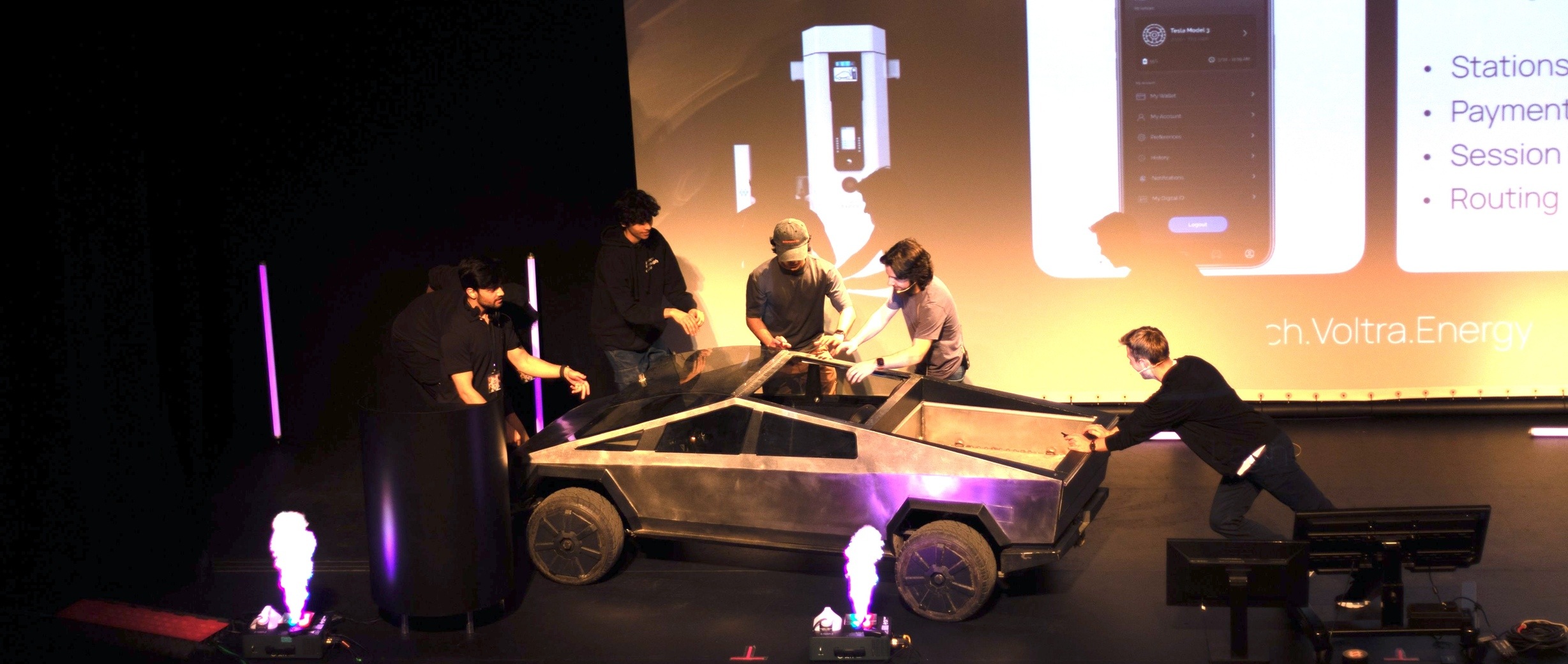 Half-scale Cybertruck at the Symposium: A replica that became a popular photo spot