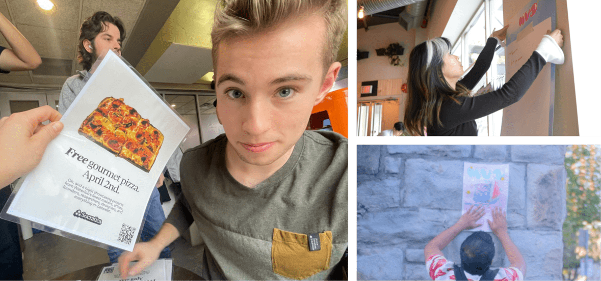 - Proactively identify people with intriguing projects by attending co-working sessions like Socratica/Atelier/SoTo to demo at the symposium.