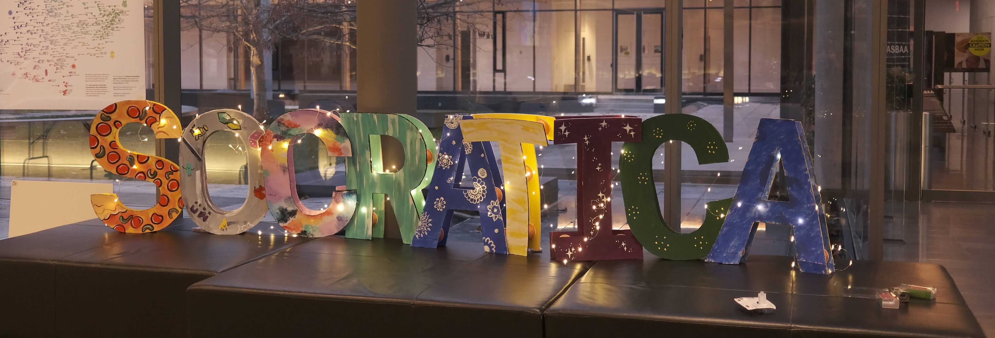 Custom Socratica letters: a colorful, 3D photo backdrop that brightened up the venue.